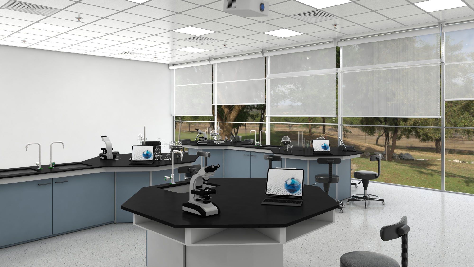İlk okul, orta okul ve lise eğitim laboratuvarlarını her dersin müfredatına uygun şekilde tasarlıyoruz. Böylece bireysel olarak ve grup çalışması şeklinde yapılan deneyler için etkili ve verimli alanlar oluşturuyoruz.