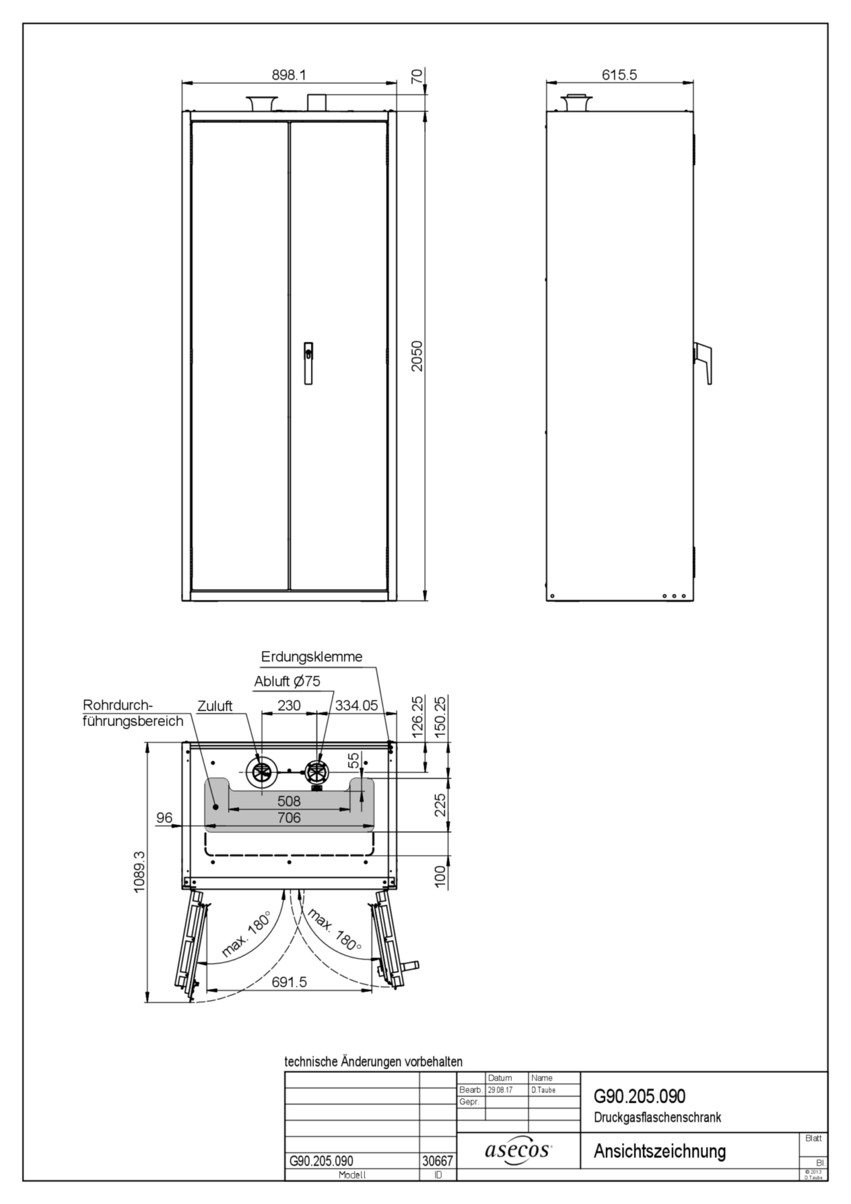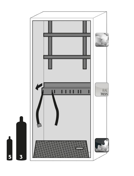 G90.205.090 modeli, EN 14470-2 standardına uygun şekilde test edilmiş, CE ve GS sertifikalı bir gaz tüpü dolabıdır. Entegre silindir kilidi ve sabitleyici iç donanımı ile birlikte gelir. Laboratuvar ortamlarına uygun beyaz rengiyle dikkat çeker. Gaz tüplerinin güvenli ve düzenli şekilde saklanmasını sağlar.