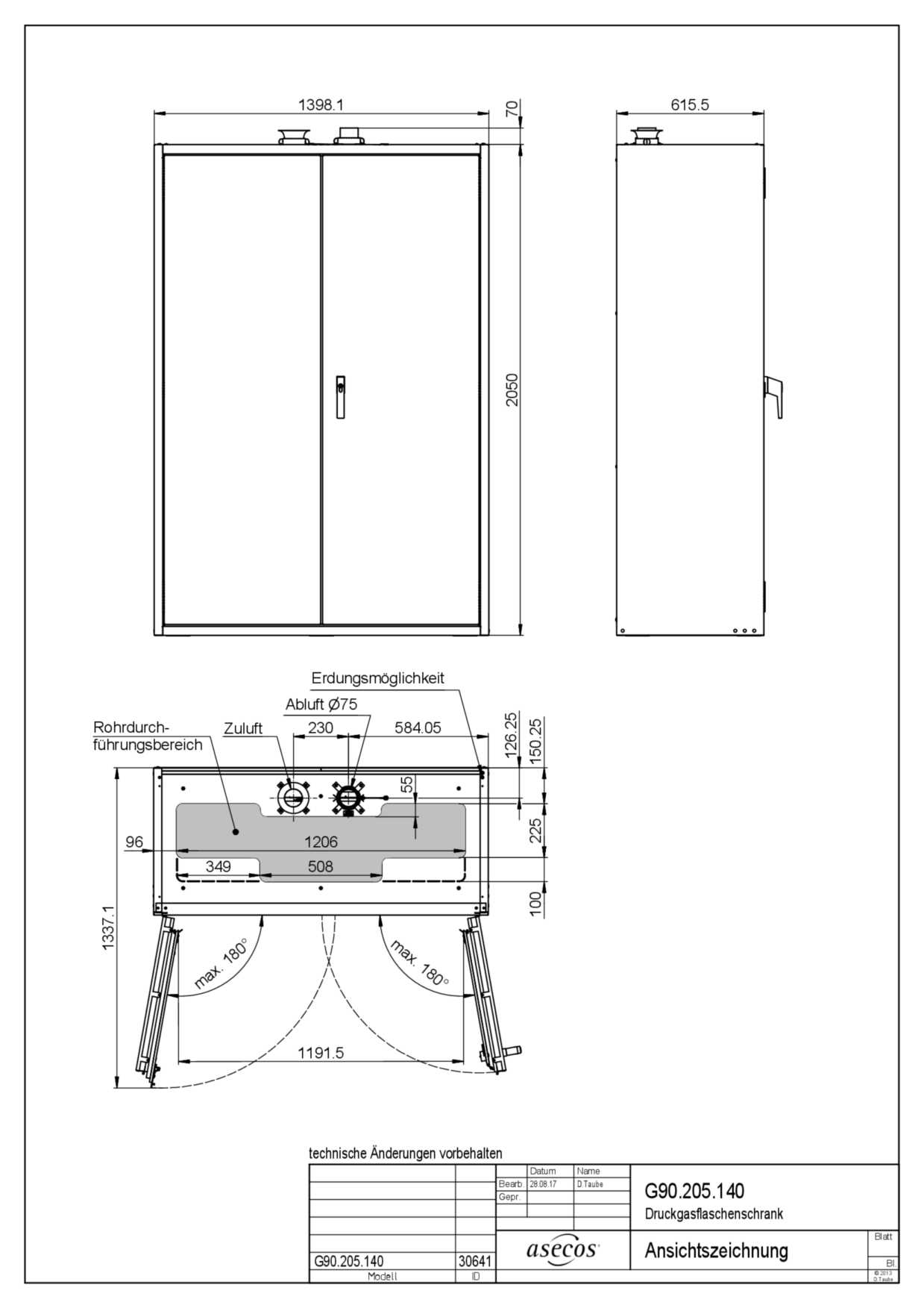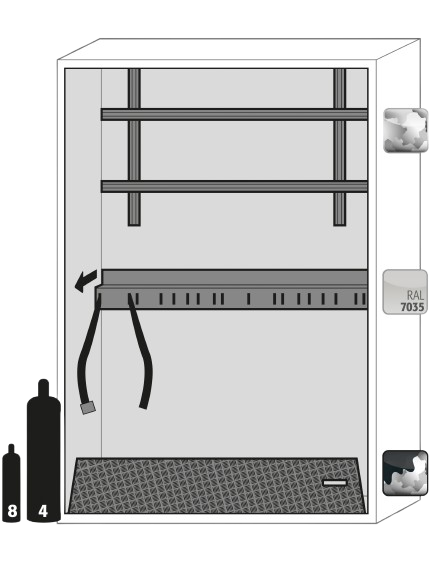 G90.205.140 modeli, gaz tüplerinin güvenli ve yönetmeliklere uygun şekilde depolanmasını sağlayan, yangına karşı 90 dakika dayanıklı bir saklama dolabıdır. EN 14470-2 ve DIN EN 16121/16122 normlarına uygun şekilde test edilmiş ve GS ile CE sertifikalarına sahiptir. 6 adede kadar 50 litrelik gaz tüpünü güvenli şekilde barındırabilir.
