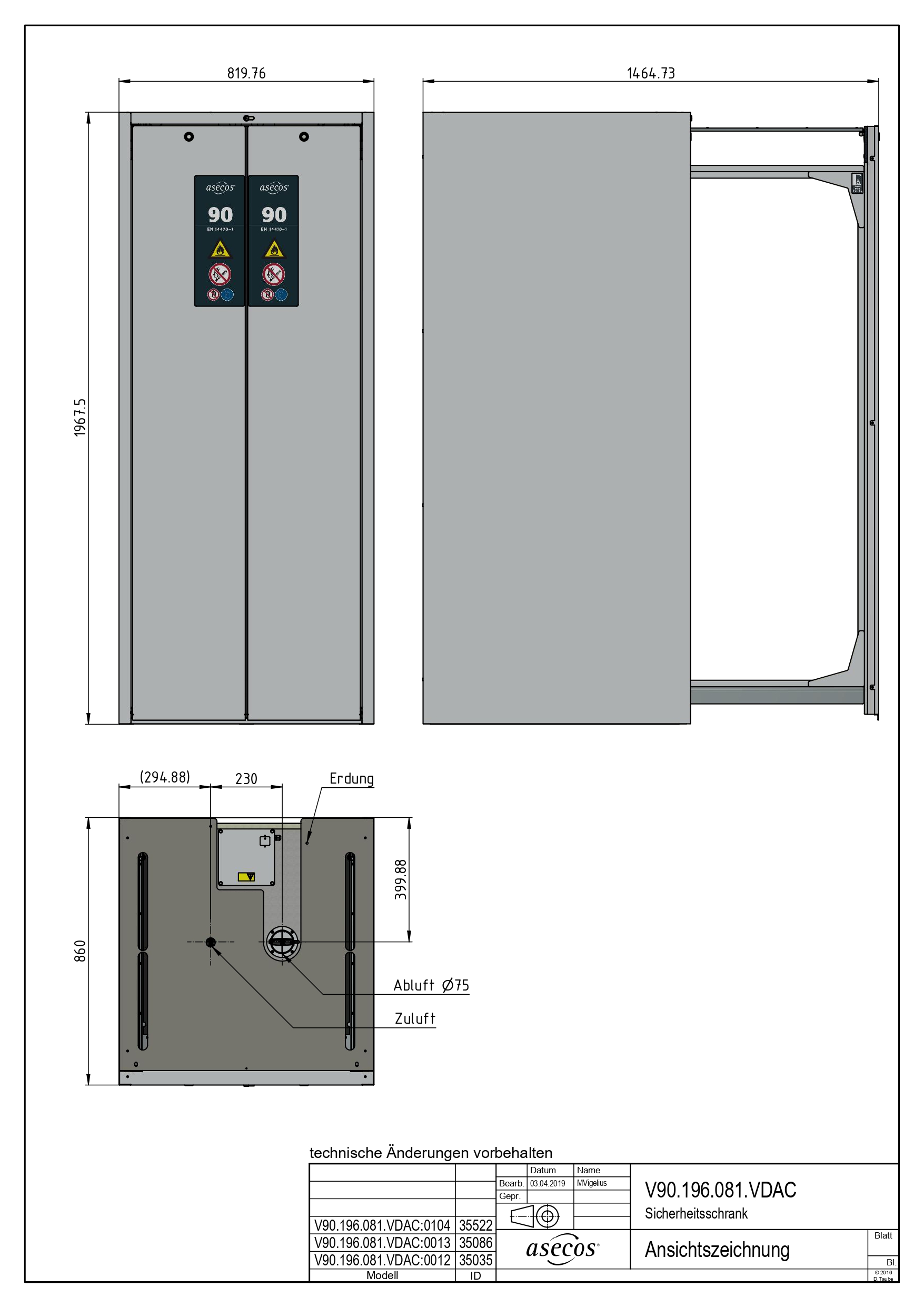 V90.196.081.VDAC:0013 modeli, çekmece bazlı yapısıyla hem depolama verimliliği hem de güvenlik sağlar.